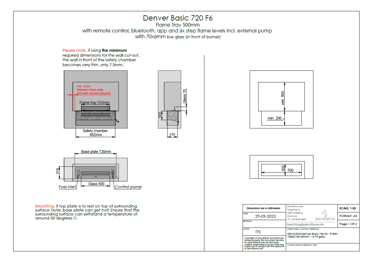 Decoflame’s Denver F6 bio burners range from 620mm to 3920mm in length. Developed and manufactured at our local facility in Vestbjerg, Denmark, these burners offer exceptional flexibility for projects of any size.