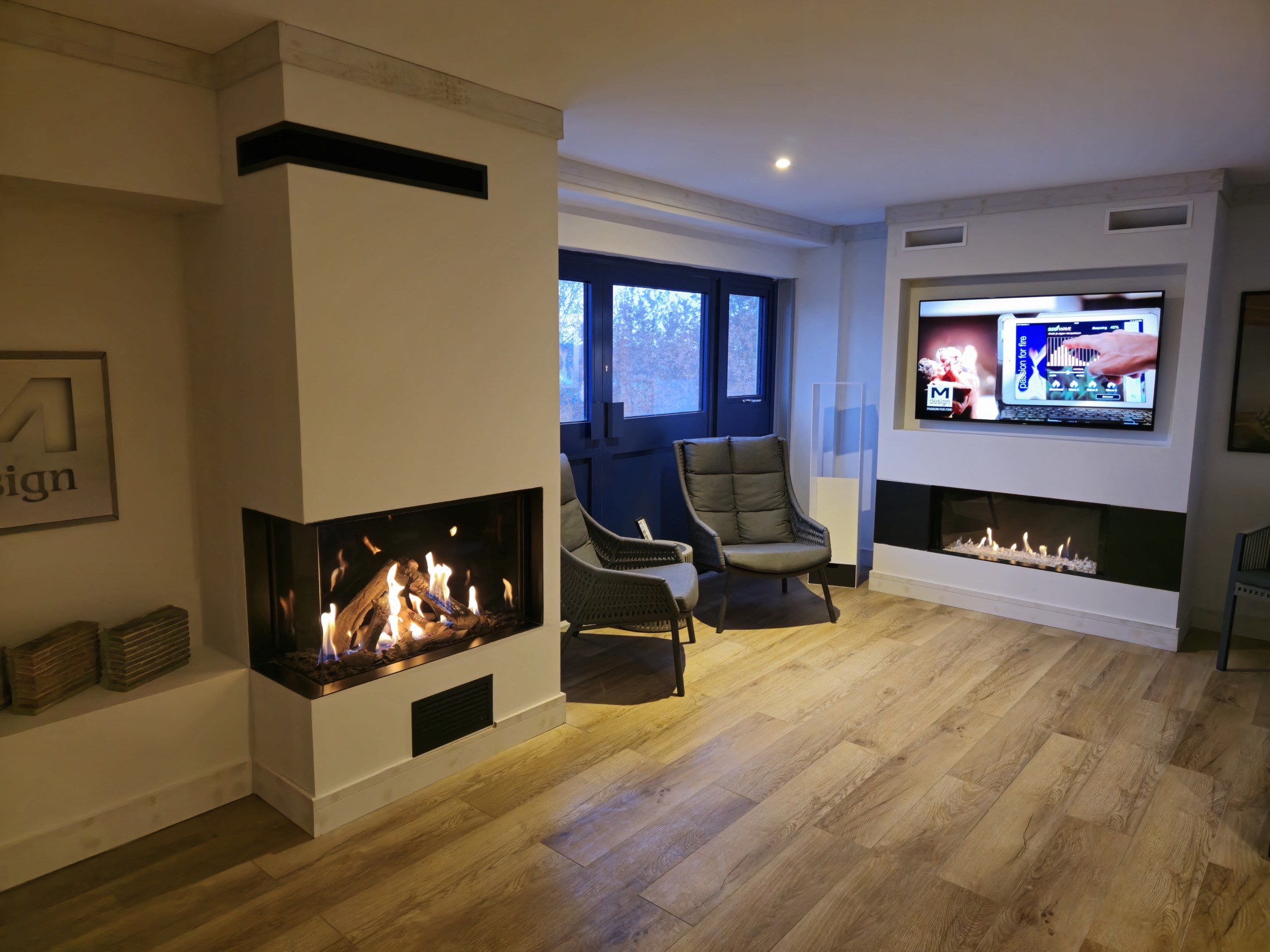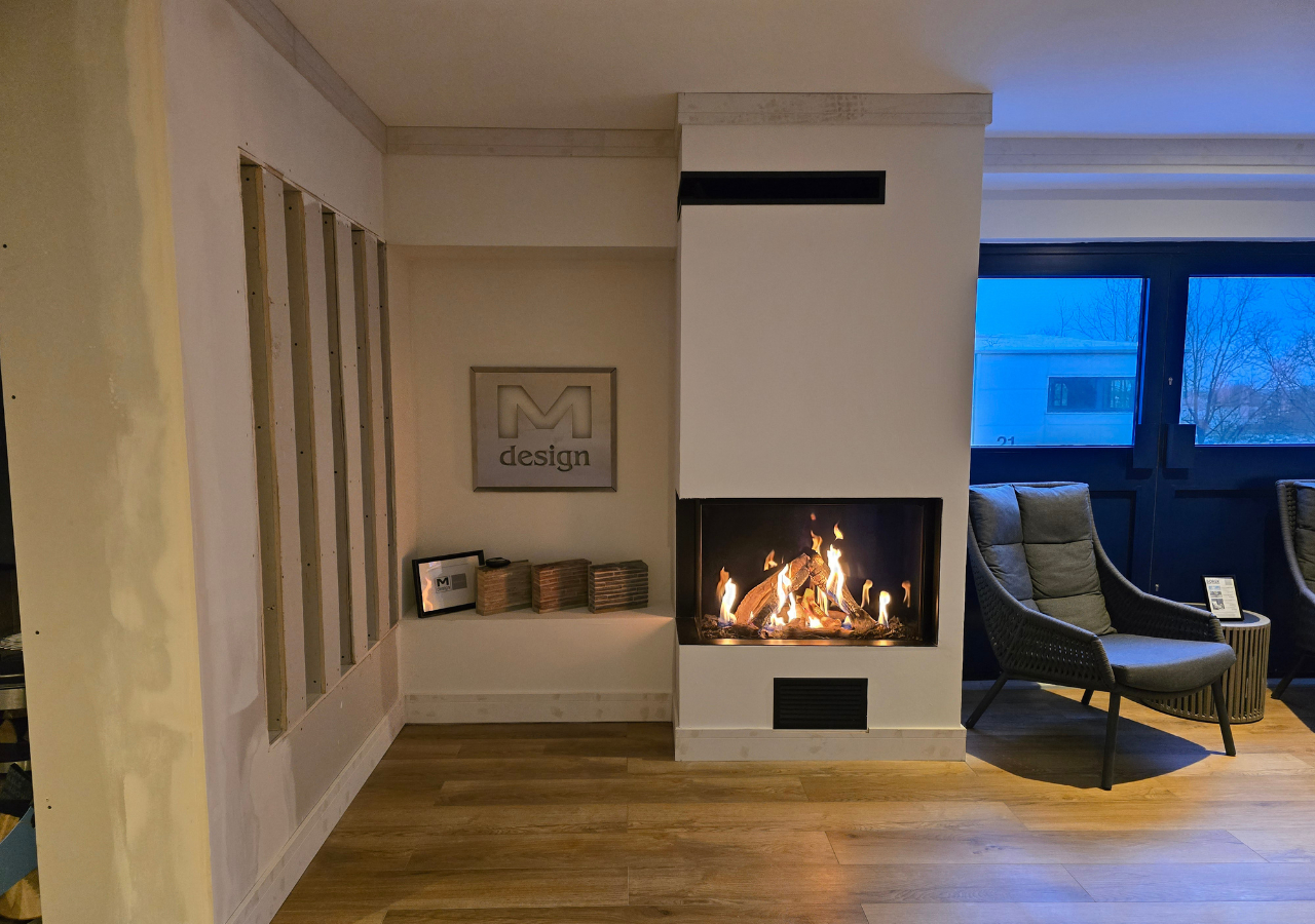 The True Vision 850 CL offers an immersive experience with a widened view of the fire. This corner fireplace transforms your space with its impressive design and provides a stylish addition to your living space. This gas fireplace mimics the ambiance of a traditional campfire, with vertical burners and appropriate wood set creating tall flames and atmospheric light.
